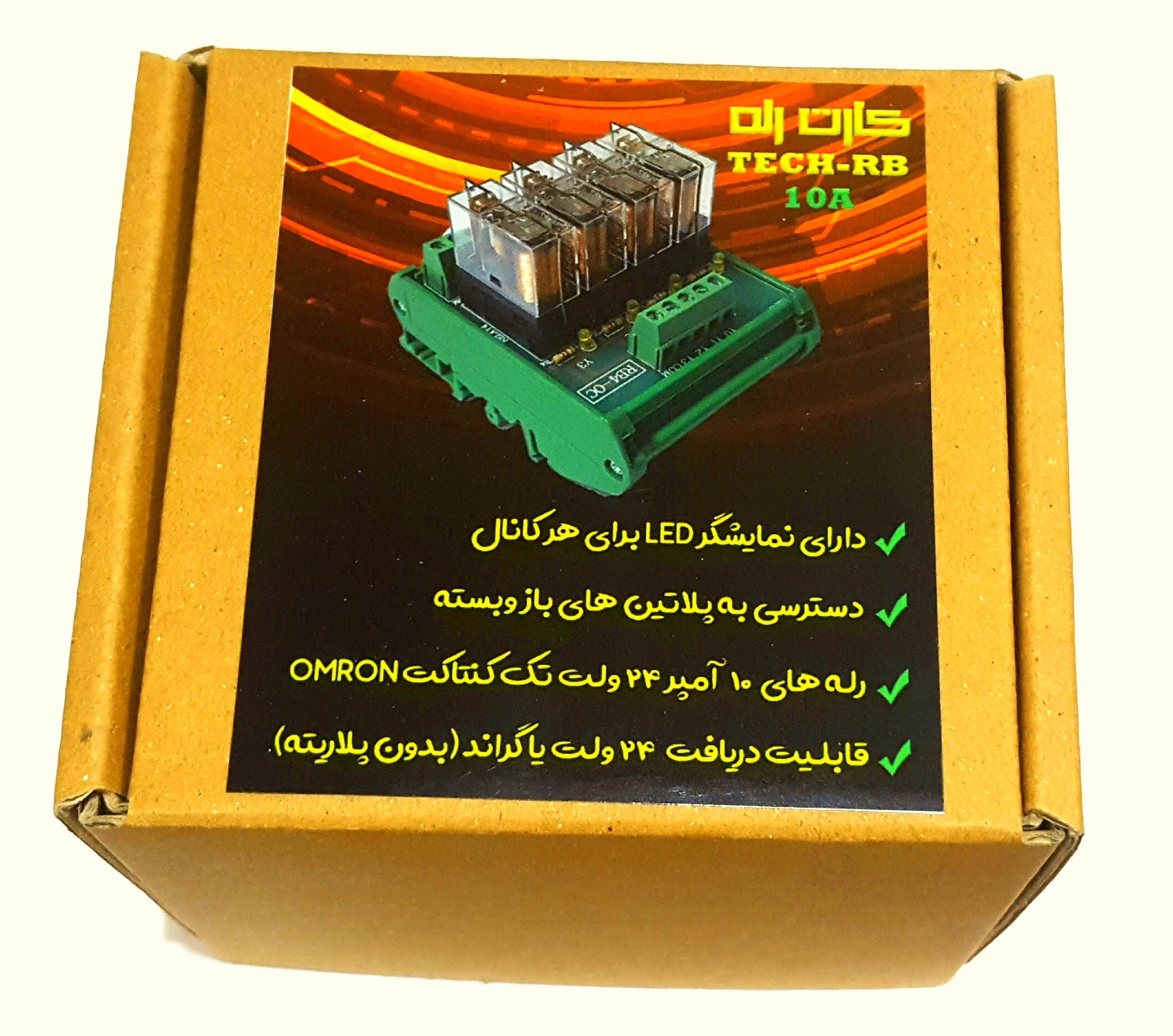 کارت رله بردهای 10 امپر دارای سوکت رله و رله 5 پایه و 16 امپر دارای سوکت رله و رله 8 پایه می باشد.