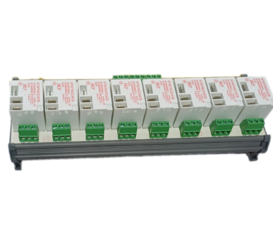 برای ورودی هر رله یک ترمینال که دارای یک مسیر صفر مشترک com و ۸ ترمینال جداگانه ایزوله برای تحریک بوبین رله ۲۴Vdc ,12Vdc,220Vac با جریان تغذیه بسیار اندک حدود ۴۰MAو در خروجی هررله سه مسیر با ترمینال NC.NO. . COM با تحمل جریان ۱۰ الی 30 امپر و ولتاژ ۲۵۰ ولت ac یا ۳۰ ولت dcوجود دارد.
